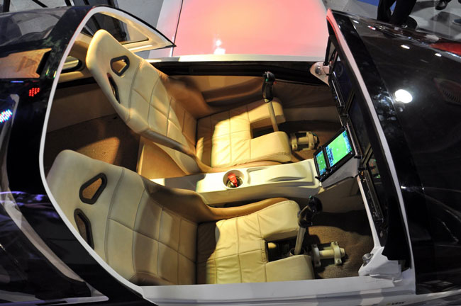 Entre ambos asientos se encuentra la llave selectora de tanques de combustible. Detrás de estos hay un lugar que puede ser usado para transportar algunos elementos, al que se podría acceder externamente por la que parece ser una puerta ubicada en el lateral derecho. La terminación interior es en plásticos, tapizado de cuero, con un bolsillo en las paredes laterales para el transporte de elementos como trabas, fundas cubre pitot, listas de checkeo, etc. y alfombras en el suelo.