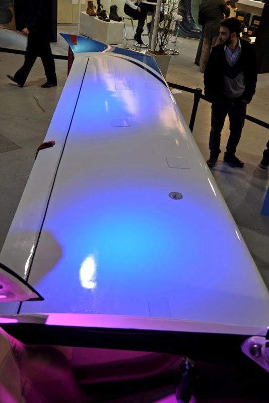 Al estar construidas con materiales compuestos sus alas presentan una gran limpieza aerodinámica, en su borde de fuga alojan a los alerones y flaps. Sus punteras disponen de winglets y en su extradós se encuentran las bocas de llenado de los tanques de combustible que están alojados en su interior.